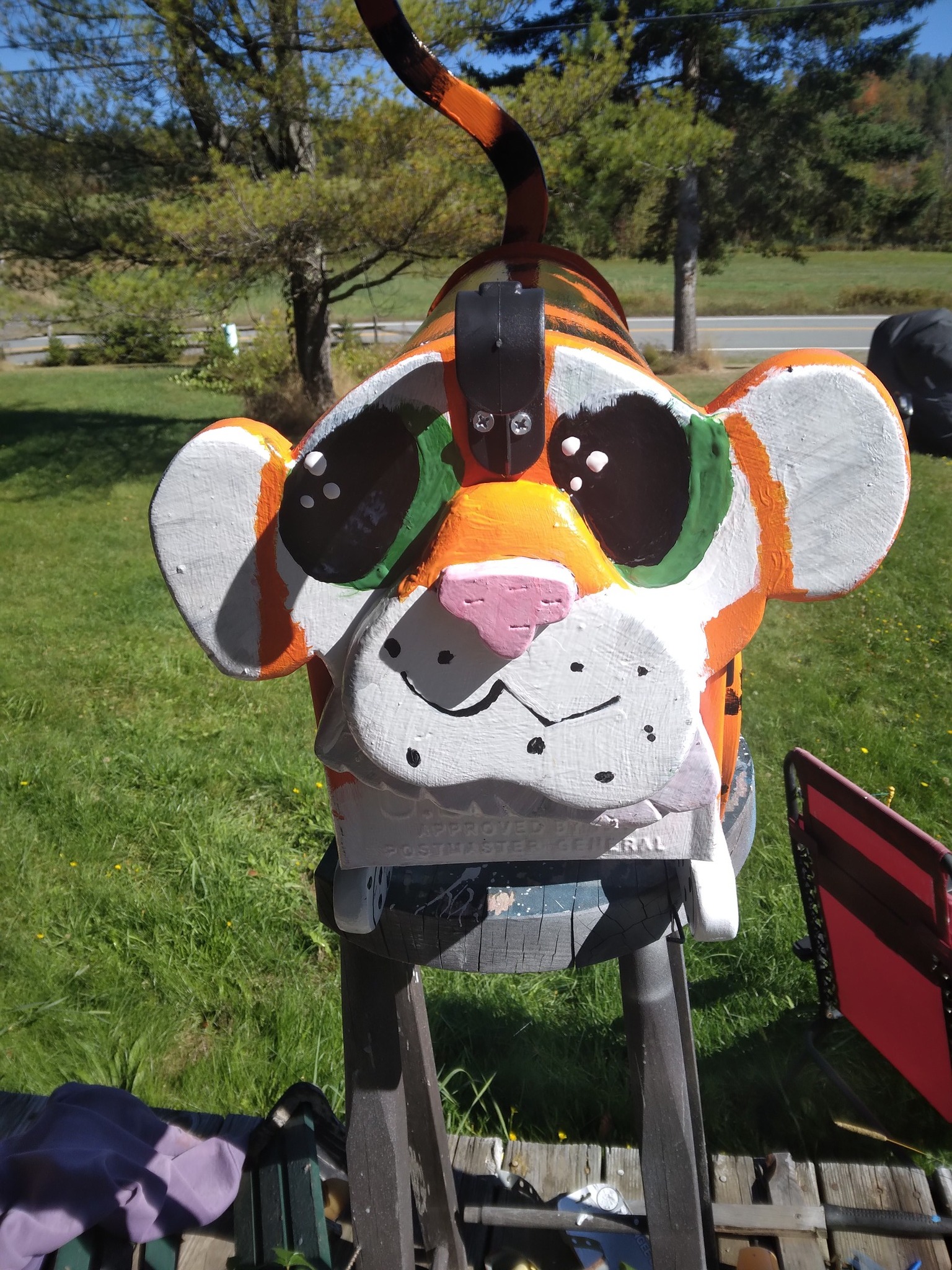 Heres a very cut tiger cat mailbox. customer sent me a photo of her favorite stuffed animal and asked to make it into a mailbox…